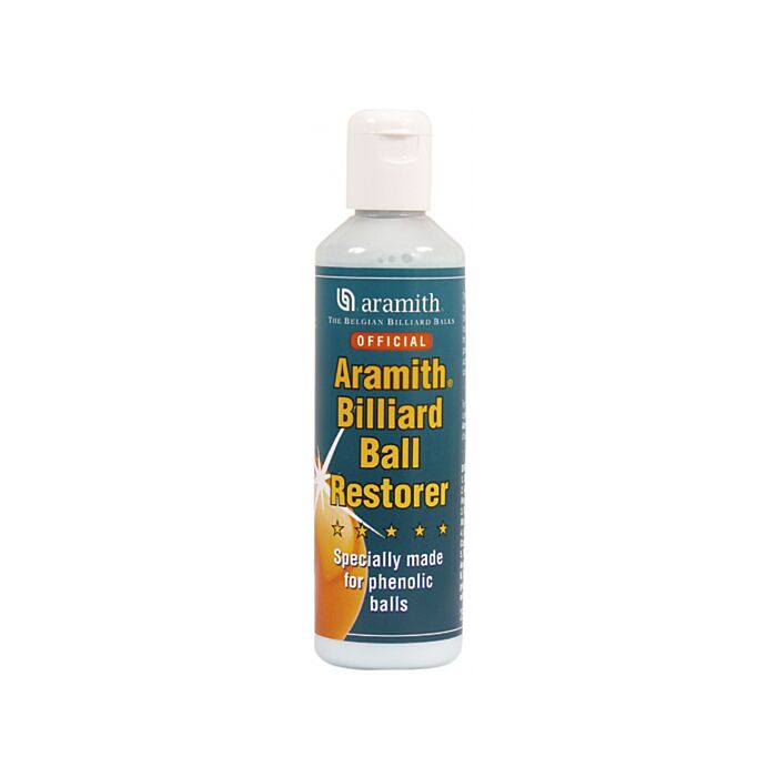 - Goed schudden, een druppel Aramith Restorer op de bal doen, met een micro-fiber doek goed poetsen, daarna met een droge doek of poetskatoen uitpoetsen.