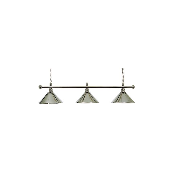 This classic billiard table lamp features a chrome bar and 3 chrome shades. The shades are designed for maximum durability and are rounded on the ends, so there is no lip. The inside of each shade is painted white to better reflect light. All fixtures and fittings supplied.