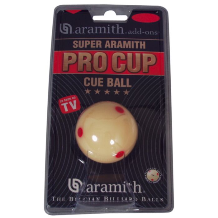 Deze personal poolball van Aramith is de bekende ProCup poolbal met de rode stippen. Door de rode stippen op de biljartbal ziet men goed wat voor effect de biljartbal heeft. Hierdoor leert men ook beter het effectspel onder de knie te krijgen of om te demonsteren.