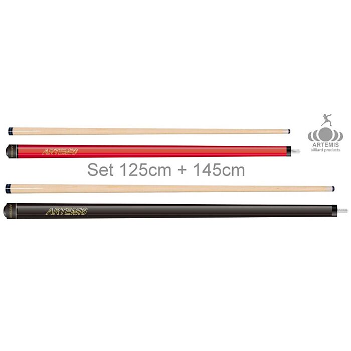 Set van 2 artemis poolkeuen, solid red & black met gouden Artemis logo