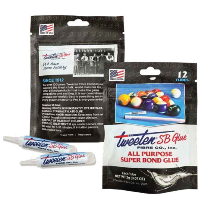 Met Tweeten SB Glue zijn reparaties en het opnieuw tippen van je keu heel eenvoudig. Deze veelzijdige, sneldrogende secondelijm is speciaal ontwikkeld om originele Tweeten leren pomeransen stevig te bevestigen aan de moderne ferrule-materialen van vandaag.